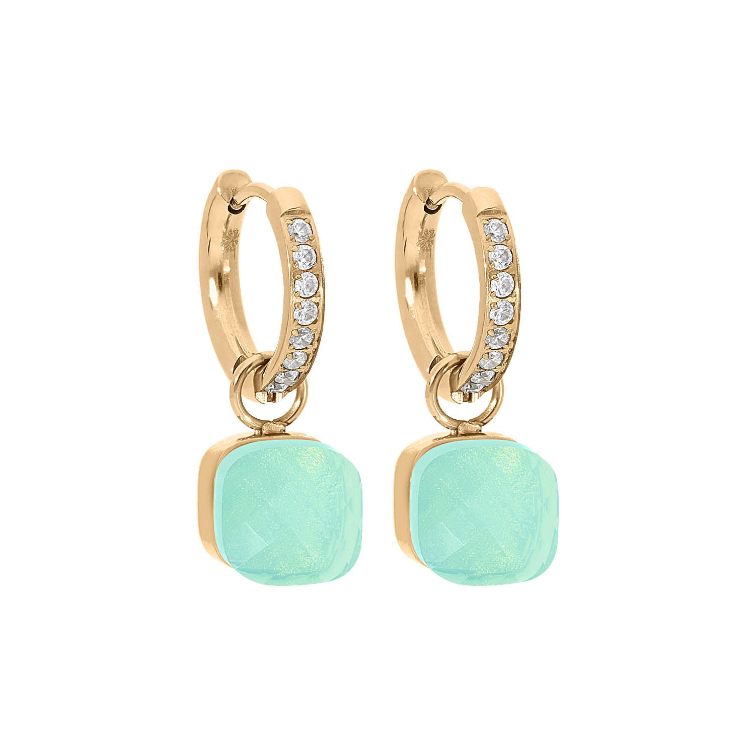 Dieser Creolen mit einem Kristall-Solitär mit 42 faszinierenden Facetten ist in den Edelstahlfarben Gold, Roségold und Silber erhältlich.